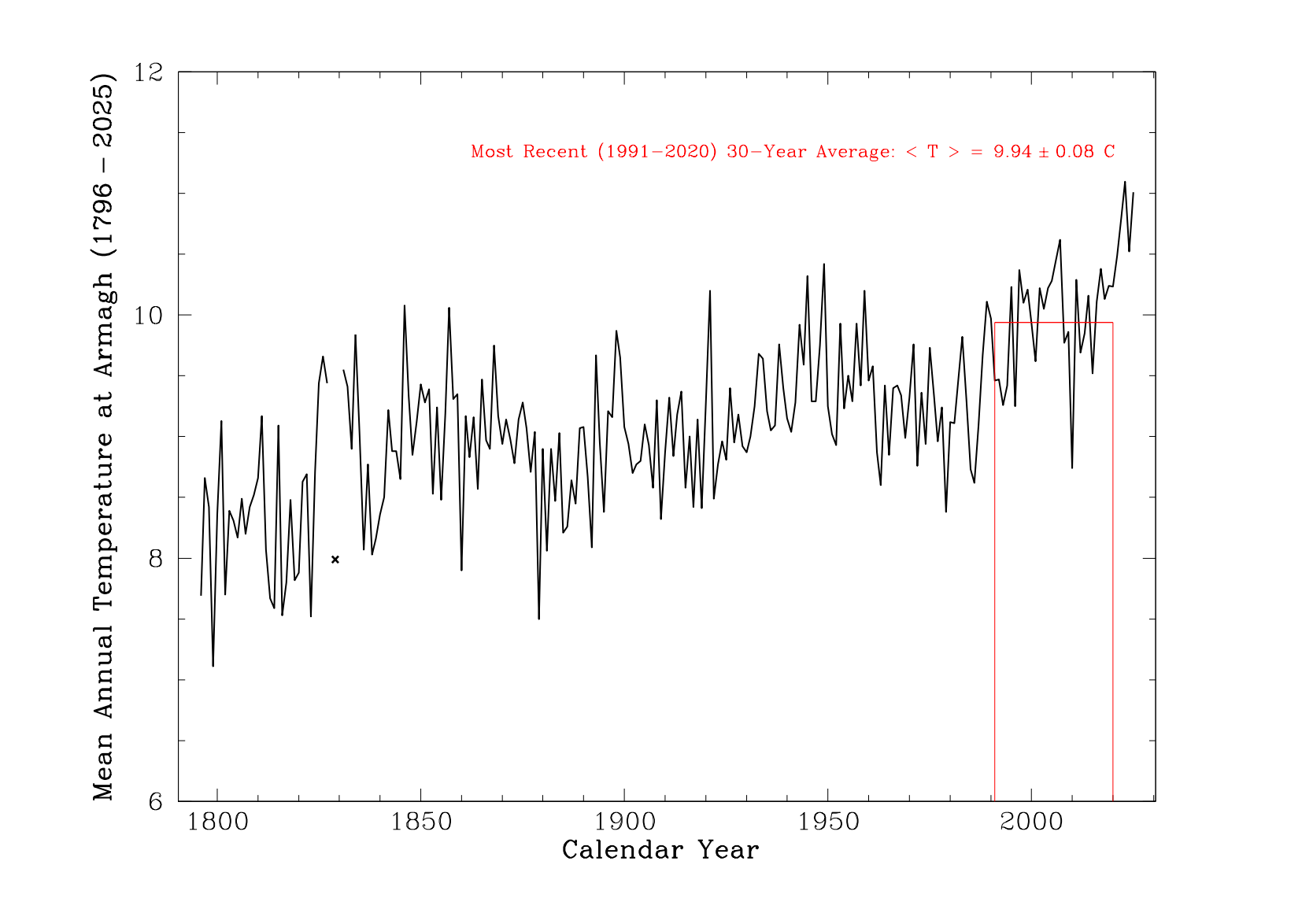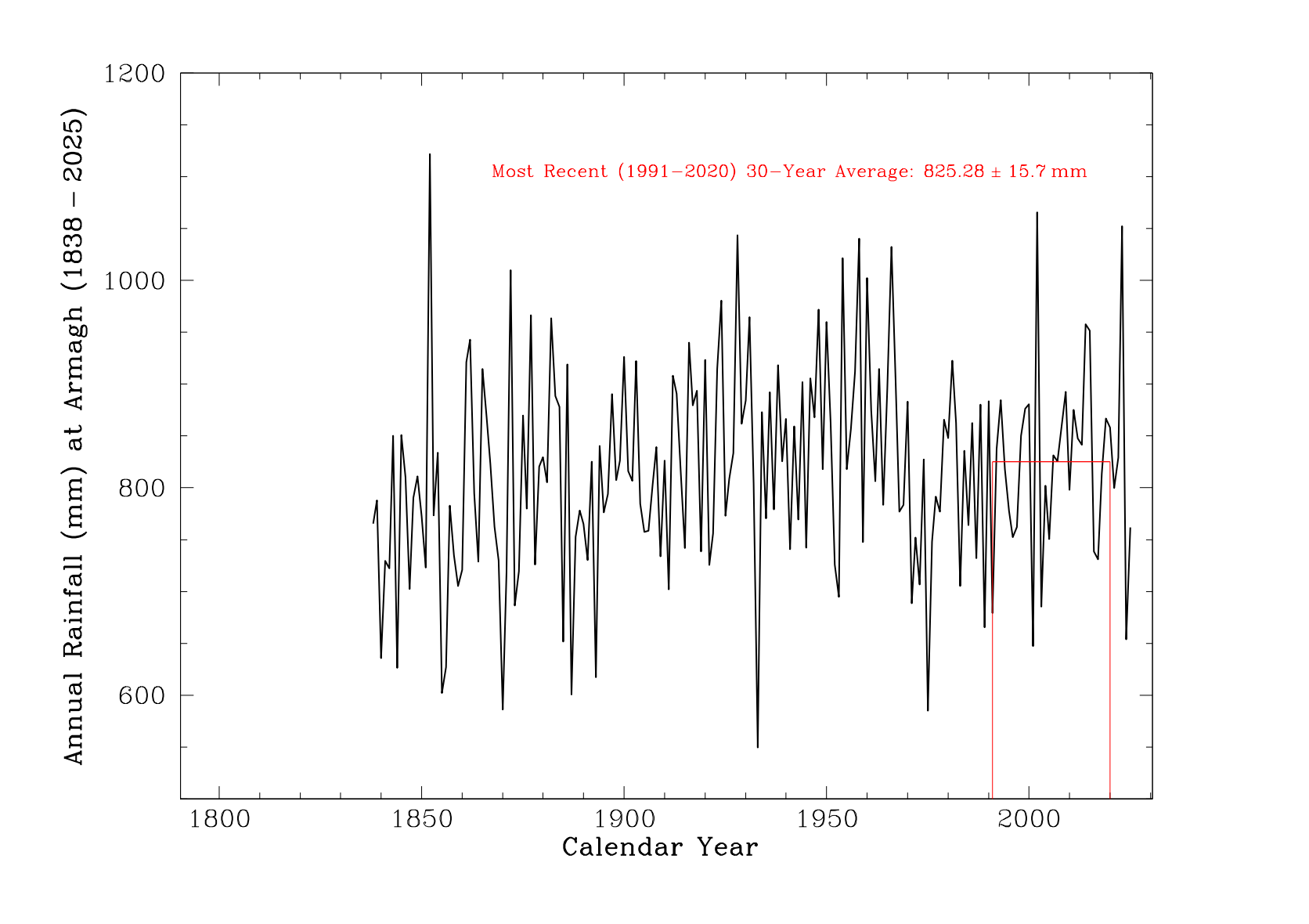 These data refer to observations made at Armagh Observatory, which has been recording the weather since 1795.