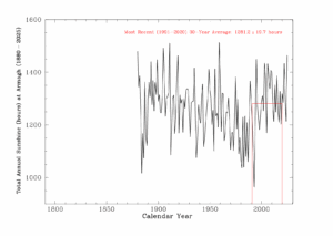 With 54.7 hours of strong sunshine, December 2025 had approximately 44% more sunshine than the long-term December average and 27% more than the most recent 30-year average. The sunniest day was the 2nd, with 6.0 hours of sunshine, followed by the 26th with 5.9 hours, and the 12th, 16th, and 24th, each with 5.5 hours.